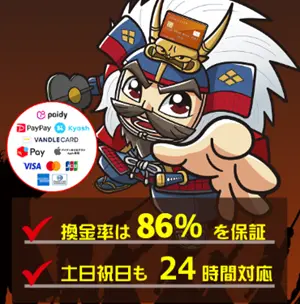 | おすすめポイント | ・最大換金率98.6% ・手数料無料 ・創業20年以上の老舗 |